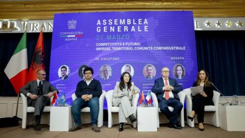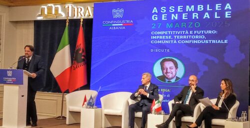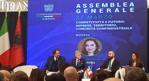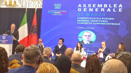 “Sono arrivato in Albania per la prima volta sul finire del 2014, e ho potuto quindi constatare in prima persona, da allora a oggi, il ritmo di sviluppo esponenziale che questo Paese, con cui condividiamo storia, radici e socialità, oltre che vocazione migratoria, ha vissuto e sta vivendo, offrendo opportunità sia nei settori tradizionali che in quelli di ultima generazione che offrono sempre migliori condizioni salariali e ambientali in un contesto di produttività – ha esordito il nuovo Presidente Rogai – Confindustria è non solo il sindacato delle imprese, è una realtà che svolge un ruolo sociale di rilievo sia come soggetto propositivo di politica economica, sia come erogatore di servizi reali, sia come organizzatore di eventi in grado di creare sinergie, socialità, networking. Quando sono giunto qui, per un euro occorrevano 140 lek, adesso la moneta unica europea si scambia stabilmente sotto i 100 lek, indicatore del crescente grado di apertura dell’economia albanese e dei suoi mercati in relazione a quelli della UE, con un livello di integrazione già in corso in linea di fatto. Ogni mese la nostra base associativa si arricchisce di ulteriori iscritti da entrambi i Paesi, e ciò favorisce l’autorevolezza della nostra capacità di dialogo e di proposta in un momento storico in cui la funzione consultiva delle Associazioni è fondamentale a fronte delle innovazioni infrastrutturali in arrivo e di novità finanziarie epocali come la Banca albanese di sviluppo di prossima attivazione. La nostra è una visione di competizione che, come dice il titolo di questa Assemblea, punta a creare uno spirito di comunità misurato fra l’altro dall’espansione della bilancia commerciale e dalla capacità di creare occupazione dignitosa tramite l’innesto di innovazione e formazione nelle aziende associate. Grazie al mio past President Sergio Fontana, alla squadra dei Vicepresidenti e Consiglieri direttivi, al Team amministrativo, alla direttrice Gerta Bilali, alle Istituzioni con cui il dialogo rimane costante ed efficace”.