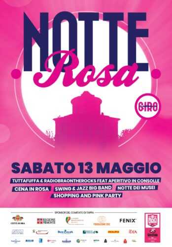 Ma la “Notte Rosa” – nuovo appuntamento della rassegna “Ci vediamo in Giro” – sarà anche l’occasione per soddisfare interessi artistici e culturali. Per l’occasione, infatti, tutti i musei cittadini saranno aperti per visite serali gratuite anche per i non residenti a Bra.