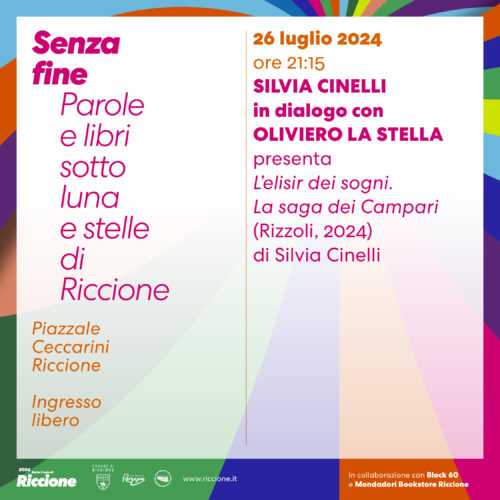 Riccione – Dopo il successo dei primi due appuntamenti della rassegna “Senza fine. Parole e libri sotto luna e stelle di Riccione”, il primo con Gino Paoli e il secondo con Fulvio Abbate e Bobo Craxi, proseguono gli incontri con gli autori sul palco di piazzale Ceccarini a Riccione.