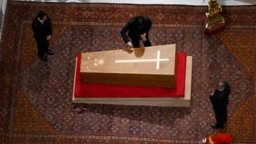Si è celebrato ieri sera, alle ore 20, presso l’Altare della Confessione nella Basilica di San Pietro, come annunciato, il rito della chiusura della bara del Romano Pontefice.