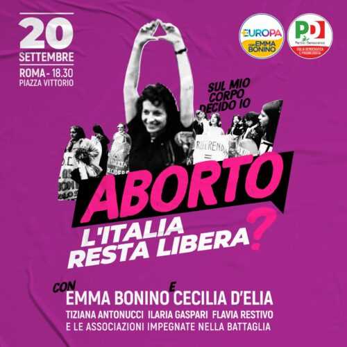 Il 20 settembre – alle ore 18.30 presso i giardini di Piazza Vittorio Emanuele II, Roma – insieme alla leader di +Europa Emma Bonino, interverrà sul tema la Deputata del Partito Democratico Cecilia D’Elia e Tiziana Antonucci, Presidente dell’AIED di Ascoli Piceno. L’incontro sarà moderato dalla filosofa Ilaria Gaspari e dalla blogger Flavia Restivo. Parteciperanno all’evento anche le Associazioni impegnate nella battaglia per la piena applicazione della Legge 194/78.