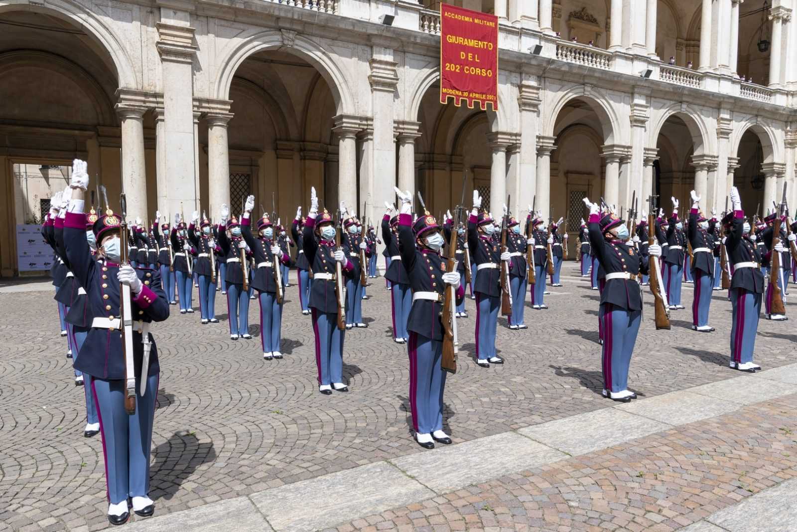 Nella prestigiosa cornice del Cortile d’Onore del Palazzo Ducale di Modena, sede dell’Accademia Militare, questa mattina gli Allievi Ufficiali del 202° corso “Onore” hanno prestato giuramento di fedeltà alla Repubblica Italiana, alla presenza del Ministro della Difesa, onorevole Lorenzo Guerini, e del padrino del corso, Tenente Colonnello Gianfranco Paglia, Medaglia d’Oro al Valor Militare. Alla cerimonia, condotta in forma ridotta e nel pieno rispetto delle norme vigenti per il contrasto ed il contenimento da COVID-19, hanno presenziato il Capo di Stato Maggiore dell’Esercito, Generale di Corpo d’Armata Pietro Serino, e il Comandante Generale dell’Arma dei Carabinieri, Generale di Corpo d’Armata Teo Luzi. Presenti inoltre Autorità civili e militari, tra le quali il Presidente della Regione Emilia-Romagna, Stefano Bonaccini, il Sindaco Gian Carlo Muzzarelli, il Prefetto, Dott.ssa Alessandra Camporota, il Vescovo della Diocesi modenese, Mons. Erio Castellucci, il Rettore dell’Università di Modena e Reggio Emilia, Prof. Carlo Adolfo Porro.