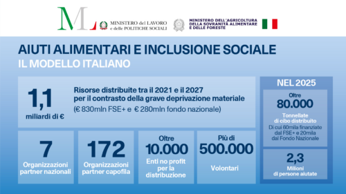 Peculiarità del modello italiano è infatti la solida alleanza tra le Istituzioni e oltre 10.000 enti del Terzo settore, volta non soltanto alla distribuzione gratuita di beni di prima necessità, ma alla costruzione di percorsi personalizzati di inclusione attraverso misure di accompagnamento sociale. Una strategia nuova e integrata, che mira a costruire una rete di supporto concreta e duratura, fondata sul principio di sussidiarietà.