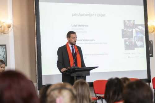 I saluti e gli auguri di apertura sono stati formulati dal Vice Ambasciatore Luigi Mattirolo, dalla Titolare responsabile della Sede Aics di Tirana Stefania Vizzaccaro e da Elisabeta Koza in rappresentanza del Ministero della Salute e Protezione Sociale del Governo dell’Albania. Gli indirizzi di benvenuto e di buon lavoro al folto pubblico presente sono stati utili a riaffermare in termini concreti la chiara e corale volontà istituzionale di rafforzare la partnership e l’impegno volto a consentire alle Donne albanesi, in particolare delle zone rurali e dei villaggi, di uscire dalla condizione di povertà forzata e di dipendenza economica, due fattori regressivi che rischiano di condurre a forme di violenza di genere.