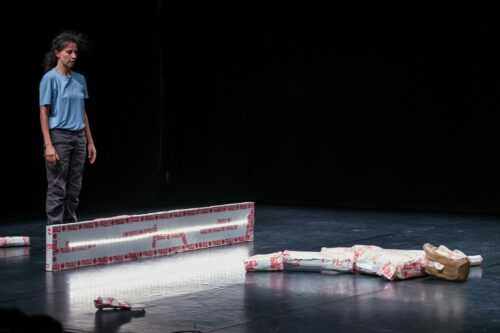 “Anonima” di e con Cecilia Ventriglia, visione scenografica e sonora di Davide Calvaresi, disegno luci Pietro Cardarelli, una produzione realizzata in collaborazione con AMAT, presentata a Danza in Rete in prima regionale, sabato 19 marzo 2022 alle 18.00 e alle 19.00 allo Spazio Ab23, è una creazione istantanea incentrata sul binomio essere umano-essere divino. La performance intende soffermarsi su questo mistero dandogli una forma visibile e lo fa utilizzando un pupazzo di cartone dalle sembianze cristologiche. Gesù, esempio archetipico e assoluto dei valori più alti dell’esistenza, può fare ritrovare quella spiritualità che è in ciascuno di noi; per provare a coglierla, bisogna lasciarsi disorientare e tornare a riconoscerci come parte della Natura. Perché sacralità e natura parlano sovente una lingua comune, senza titoli, anonima. La performance è stata selezionata per la Vetrina della giovane danza d’autore – Anticorpi XL 2021.