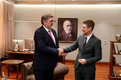 Il nuovo Ministro del Governo Rama per gli affari esteri e per l’integrazione europea, onorevole Ferit Hoxha, ha svolto un proficuo colloquio con sua eccellenza l’Ambasciatore del Regno di Spagna a Tirana, con un focus espressamente dedicato alle opportunità, tutt’ora molto significative e prospettiche, nei settori strategici di comune interesse attinenti alla ricettività turistica, alle fonti energetiche rinnovabili e alla governance delle amministrazioni locali, laddove le Istituzioni governative iberiche hanno sviluppato, nel tempo, tutta una serie di migliori buone prassi