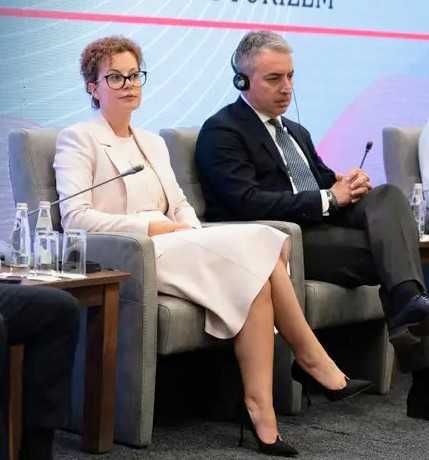 Elisabeta Katiaj, vicepresidente esecutivo della camera di commercio della Diaspora, e Alessandro Grillo, alto dirigente di Intesa Sanpaolo bank Albania a Tirana