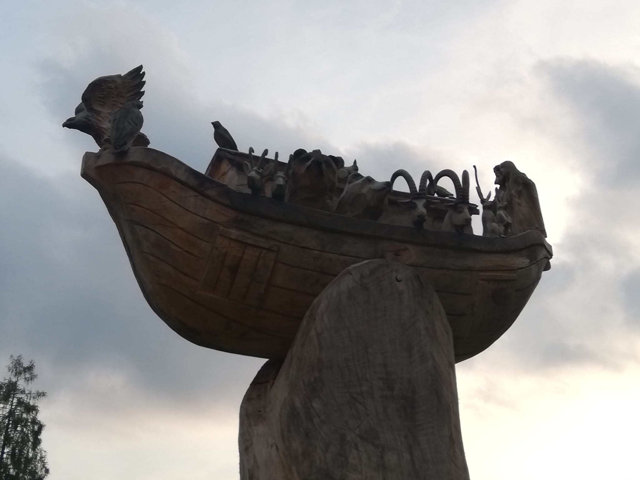 L’arca ospita gli animali tipici della fauna alpina, tra cui l’orso, il cervo, il gufo o l’aquila, ma anche quelli della tradizione, come il corvo e la colomba, realizzati in legno di cirmolo da Petri nel suo laboratorio. Si tratta di una scultura simbolica, che invita tutti coloro che la incontrano sul loro cammino a rispettare la biodiversità del territorio e a tutelarne le risorse.