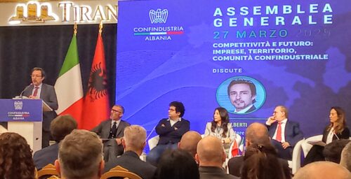 L’Ambasciatore Alberti ha poi espresso un inciso finale di fronte al prestigioso e gremito uditorio: “La mia ambizione, in prospettiva, è che non si parli più di sistema Italia, poiché tale concetto deve diventare scontato e acquisito. L’aspirazione è che si parli di Italia, di presenza Italiana e di operatività di istituzioni e di soggetti pubblico privati in grado di favorire un ecosistema sempre più favorevole all’arrivo di investitori che dal nostro Paese vogliano crescere in una realtà, come quella albanese, destinata a passare da una situazione meramente labour intensive a una capital intensive”.
