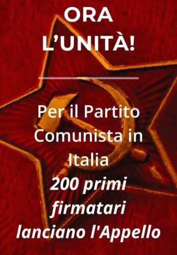 Per questo, 200 intellettuali, operai e militanti hanno lanciato l’appello “L’unità! Per un Partito Comunista in Italia”, chiedendo a gran voce a tutti coloro che si sentono orfani di quello che fu il più grande partito Comunista d’Europa, il P.C.I. – quale che sia la tessera che hanno (o non hanno) in tasca – di unirsi per dare avvio ad un processo che, superando le divisioni e gli antagonismi interni, possa portare alla rinascita di un forte partito comunista in Italia, per la classe operaia, per i lavoratori e le lavoratrici.