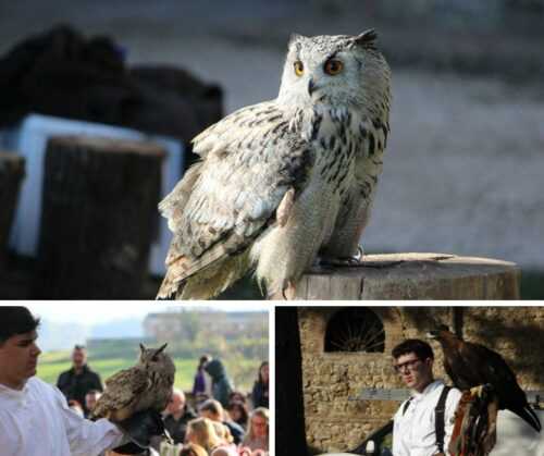 Aquile, falchi, gufi e barbagianni sono i maestosi rapaci pronti a spiccare il volo nei giardini del Castello di Tabiano (PR).