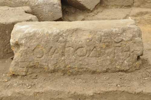 I due blocchi, che parlano anche di un ginnasiarca (funzionario di spicco del ginnasio) che ha finanziato con fondi propri la ristrutturazione del tetto della struttura e l’ha dedicato a Ermes ed Eracle, le divinità dei ginnasi greci, si trovavano in crollo all’interno dell’orchestra semicircolare dell’auditorium, dove un tempo insegnanti e studenti si esibivano davanti a un pubblico, collegato appunto con la grande sala.