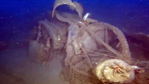 L’aereo bimotore giace su un fondale fangoso pianeggiante, a circa un miglio di distanza da Capo Campolato, e si presenta in assetto di volo, parzialmente danneggiato e ricoperto da fango e reti da strascico.
