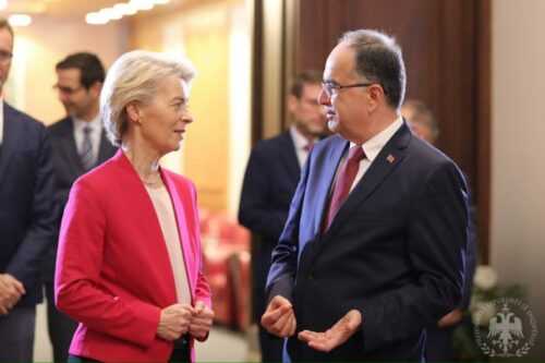 La Presidente Von der Leyen ha apprezzato l’impegno personale del Capo dello Stato per il futuro del Paese delle Aquile nell’Unione, così come la prospettiva storica che questa integrazione offre per la riconciliazione, l’integrazione economica e la prosperità della complessiva macro regione dei Balcani occidentali.
