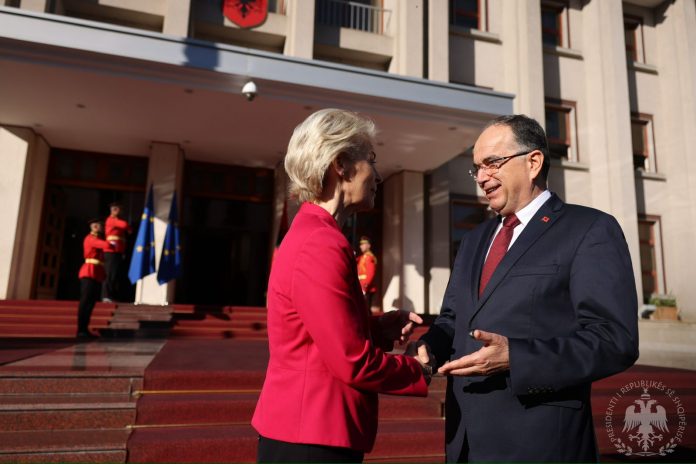 Il Presidente della Repubblica, Bajram Begaj, ha ricevuto oggi la rieletta Presidente della Commissione europea, Ursula von der Leyen, assieme all’Ambasciatore Silvio Gonzato, in un colloquio incentrato sulla strategia di convergenza dell’Albania nella UE, nonché sulla questione del futuro comunitario della penisola balcanica globalmente intesa