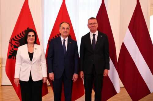 L’onorevole Begaj, accompagnato dalla First lady Armanda, ha espresso gratitudine per l’accoglienza e per il sostegno della Lettonia alla causa dell’adesione albanese alla UE, concordando con il proprio omologo che l’allargamento dell’Unione Europea ai Balcani occidentali è una soluzione alle influenze esterne accresciutesi dopo l’aggressione russa all’Ucraina e come un’opportunità per promuovere la stabilità regionale vasta.