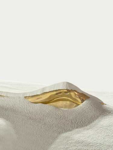 Diversi i cicli di opere presentati in mostra, tra cui: gli Specchi Solari (2024), superfici in acciaio attraversate da abrasioni fulminee come lampi, che negano la tradizionale funzione dello specchio come oggetto che riflette il mondo e rivelano, invece, la loro stessa natura come sorgente di luce; le Particelle della Tempesta (2024), dipinti materici simili a stratificazioni geologiche, che l’artista ottiene facendo macerare carta di quotidiani in vasche piene di acqua colorata con pigmenti naturali e l’aggiunta di colle; le Erme (2000-2024), che, mutuando la loro morfologia dall’erma classica antica, si compongono di una base metallica tronco-piramidale rovesciata su cui si innestano le masse informi delle teste di pietra lavica.