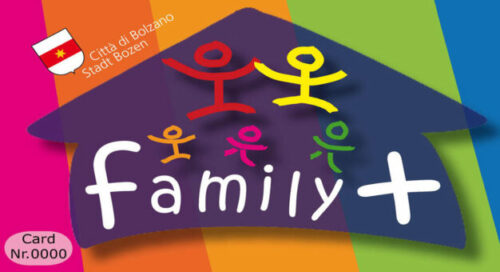 Possono richiedere la carta tutte le famiglie residenti nel Comune di Bolzano con 3 o più figli a carico e con un reddito annuo inferiore a 60.000 €. Maggiori informazioni nella pagina dedicata alla Card Family+ del Comune di Bolzano.