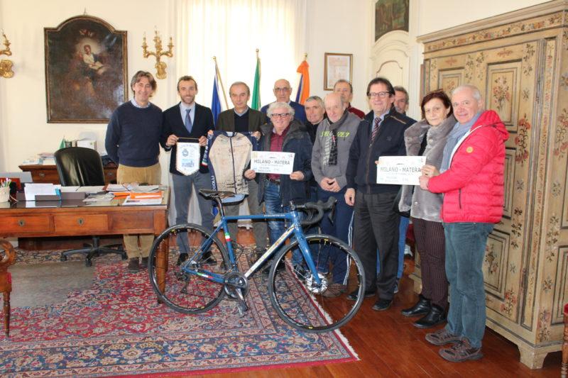 BRA (CN) – Un gruppo di cento ciclisti provenienti da tutta Italia – formato da cittadini, amatori, rappresentanti delle istituzioni, sportivi e glorie del ciclismo – a settembre ha partecipato alla terza edizione de “La Storia in bici”, pedalata che ha unito Bra, Milano e Matera. Questa mattina, 2 dicembre 2019, la delegazione braidese del gruppo e il comitato organizzatore (anch’esso braidese) sono stati ricevuti in Municipio a Bra dal Sindaco Gianni Fogliato, per un resoconto dell’impresa e per omaggiare il primo cittadino della maglia ufficiale dell’evento e del gagliardetto di Matera, tappa finale della corsa.