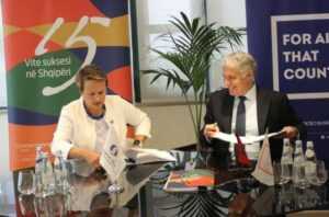 Alla cerimonia di firma dell’accordo hanno partecipato: per Intesa Sanpaolo Bank Albania, l’amministratore delegato Alessandro D’Oria, Elena Balliu, responsabile del dipartimento small business, e Jola Dima, a capo della divisione risk management; per la Banca di ricostruzione e sviluppo, l’alta referente per l’Albania, Ekaterina Sololova, e Anjeza Hobdari, dirigente aggiunta e senior banker.