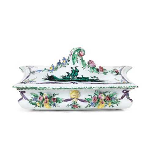 Il catalogo propone una selezione accurata di maioliche rinascimentali, barocche e settecentesche, prodotte dalle più importanti manifatture italiane come Faenza, Urbino, Deruta, Castelli e Savona, accanto a raffinate porcellane europee — da Meissen a Sèvres, da Doccia a Vienna — che testimoniano l’evoluzione del gusto tra XVIII e XX secolo.