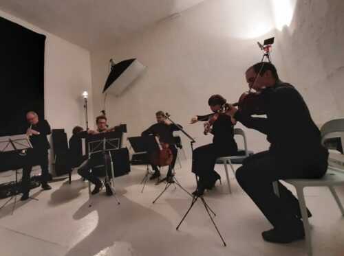 Guido Bombardieri (clarinetti e sassofoni), Oscar Del Barba (pianoforte) e AltriArchi Ensemble (Anna Pecora e Daniele Richiedei, violini), Monica Vatrini (viola), Federico Bianchetti (violoncello).