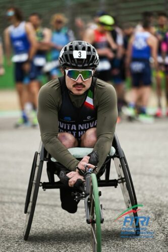 Giordano, dipendente del Comune di Riccione, ha subito tre anni fa un incidente in moto. Sportivo da sempre, dopo l’incidente si è dedicato al nuoto, poi all’handbike per poi sperimentare il triathlon.