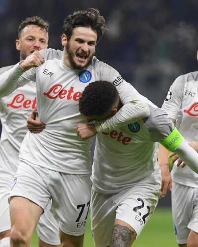La scossa però ha portato al vantaggio di Osimhen in ripartenza al 40′ (con doppietta annullata poco dopo) e nella ripresa, dopo un paio di occasioni sprecate e l’espulsione di Kolo Muani, è arrivato il raddoppio di Di Lorenzo al termine di un’azione corale impreziosita dall’assist di tacco di Kvaratskhelia.