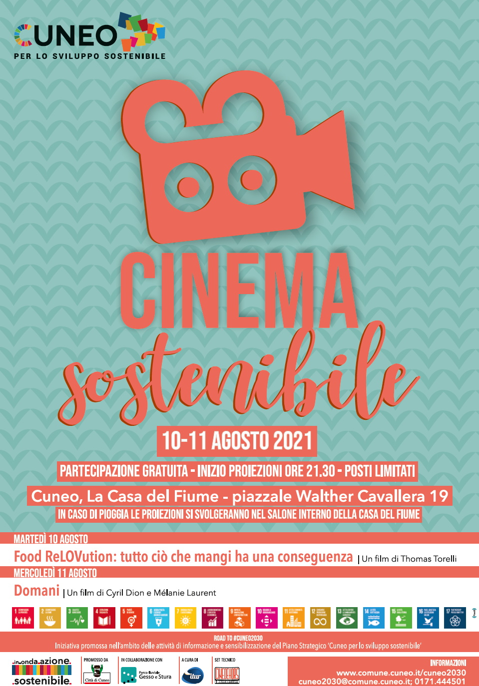 Torna, per il secondo anno consecutivo, una mini rassegna di cinema all’aperto alla Casa del Fiume, nelle serate di martedì 10 e mercoledì 11 agosto. “Cinema sostenibile” è un’iniziativa promossa dal Servizio Pianificazione Strategica del Comune di Cuneo in collaborazione con il Parco fluviale Gesso e Stura, nell’ambito delle attività di informazione e sensibilizzazione del Piano Strategico ‘Cuneo per lo sviluppo sostenibile’ “