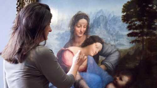 Il celebre dipinto di Leonardo, conservato presso il Museo del Louvre di Parigi, è stato restaurato da Cinzia Pasquali tra il 2011 e il 2012. L’intervento, definito “il restauro del secolo”, è stato raccontato in un documentario prodotto dal Museo del Louvre nel 2012, intitolato “Leonardo da Vinci. The Restoration of the Century“.