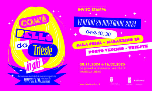La mostra, aperta al pubblico da sabato 30 novembre al prossimo 16 febbraio (dal giovedì alla domenica con ingresso libero dalle 10 alle 18), sarà presentata alla stampa venerdì 29 novembre alle 10.30 (Magazzino 26, Sala Sbisà, Porto Vecchio).