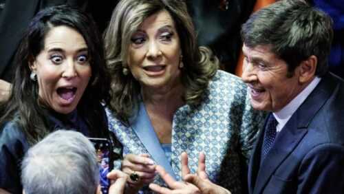 . Chiude gli occhi e se anche la voce non esce, le labbra si muovono da sole: «Ti voglio bene assaje, ma tanto tanto bene, sai». La presidente del Consiglio non è da sola. Quando Morandi attacca C’era un ragazzo che come me amava i Beatles e i Rolling Stones, l’inno antimilitarista che denunciava gli orrori della guerra americana in Vietnam e che gli costò la censura nel 1966, il ministro della Difesa Guido Crosetto, seduto qualche fila dietro la premier, canticchia con lui. Miracoli della musica. Il leader di Italia viva, Matteo Renzi, preferisce invece Uno su mille ce la fa, con cui si chiude la scaletta di Morandi: canta, applaude, batte a tempo le mani sui banchi. Non che manchi di dare prova di sapere il testo di tutte le altre canzoni, dall’inizio alla fine.
