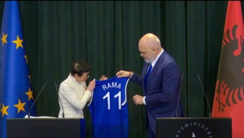 Insomma, il Paese delle Aquile ha fatto gol, ho meglio canestro, in omaggio alla storica passione e vocazione sportiva del Primo Ministro Edi Rama come cestista, e in ricordo di tale ruolo la Commissaria Kos ha voluto omaggiare all’amico Edi la maglia europea numero 11 della pallacanestro. “Non gareggio nel basket, ma per celebrare il Vostro ingresso nella UE mi impegno a scalare la montagna più alta dell’Albania”. Dove osano le Aquile.