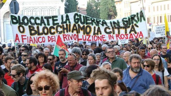 FIRENZE – Oltre 2mila persone hanno sfilato a Firenze per un corteo regionale a sostegno dei curdi contro l’aggressione della Turchia nel nord della Siria, partito da piazza Santa Maria Novella per raggiungere piazza della Signoria. Alla manifestazione, indetta dall’Assemblea toscana per il Kurdistan, hanno partecipato numerose realtà e sigle, dai centri sociali alla comunità curda passando per l’Anpi, la Cgil, forze di sinistra e anche istituzioni.