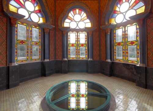 Fino al 24 giugno, ogni sabato, singoli visitatori e gruppi, con il biglietto della Serra Moresca e su prenotazione obbligatoria, potranno visitare la Torre Moresca e scoprire le suggestive vetrate colorate e gli stucchi policromi