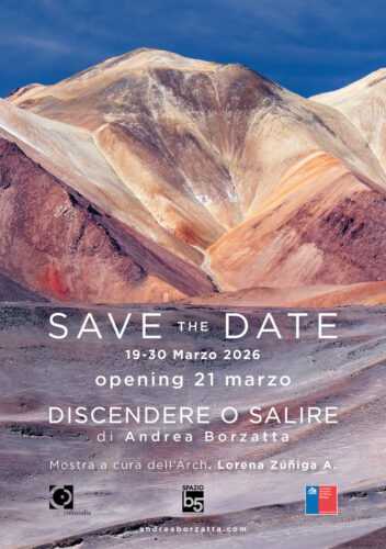 Dal 19 al 30 marzo 2026, Spazio b5 a Bologna ospita la mostra fotografica “Discendere o salire”, curata dall’Arch. Lorena Zúñiga Aguilera, con testo critico di Lorenzo Gresleri e con il patrocinio del Consolato Onorario del Cile per l’Emilia-Romagna