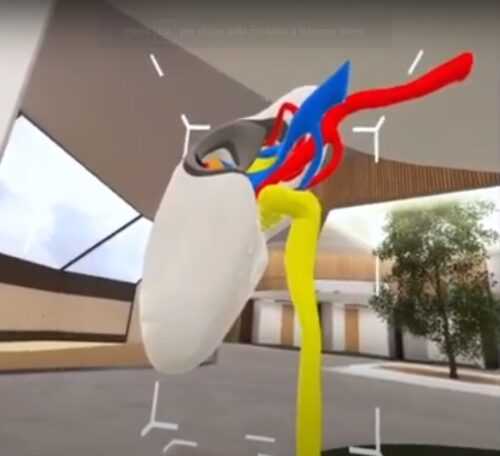 Come il caso clinico di un paziente affetto da neoplasia renale che viene operato in Belgio dal Prof. Alexandre Mottrie presso l’OLV Hospital di Aalst: l’intervento è condiviso e discusso collegialmente nel metaverso tra il chirurgo belga e gli altri colleghi – fisicamente presenti nell’Auditorium del San Luigi Gonzaga di Orbassano – riuniti all’interno di una stessa stanza virtuale e i loro avatar interagiscono con il modello 3D del paziente.