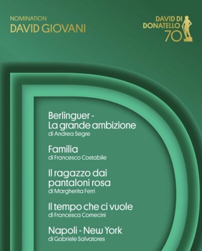 Ai David di Donatello dominano le candidature Berlinguer-La grande ambizione di Segre, e Parthenope, di Sorrentino, con 15 candidature. Seguono Vermiglio, di Delpero, e L’arte della Gioia, di Golino, con 14. Candidato come Miglior Film anche Il Tempo che ci vuole, di Comencini.