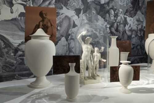 Nella mostra Cibelli ha voluto associare la porcellana contemporanea, le sue creazioni, alle antiche porcellane delle collezioni di Capodimonte, le incisioni su rame alla carta stampata che tappezza le pareti con una serie di dettagli digitalizzati delle incisioni della famosa collezione di stampa Firmian al Museo, una delle più importanti in Italia, e quattro dipinti di Carlo Saraceni che illustrano gli episodi tratti dalle Metamorfosi di Ovidio.