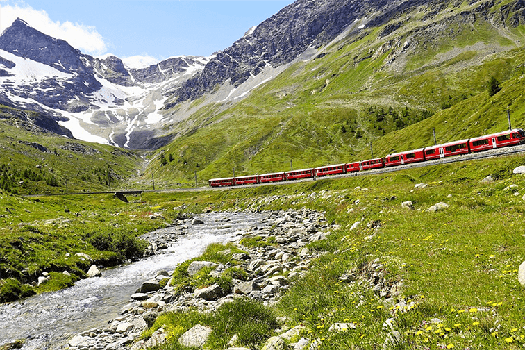 Esiste un treno rosso che collega Tirano a St. Moritz, attraversando le Alpi per 60 km e offrendo una vista unica del paesaggio alpino. È il treno del Bernina (in funzione dal 1910), che percorre la tratta ferroviaria più alta d’Europa, raggiungendo i 2.253 metri di altezza e guadagnandosi il titolo di Patrimonio dell’Umanità dell’Unesco.