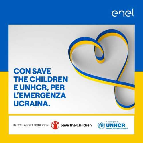 Il Gruppo Enel ha deciso di avviare una campagna globale di raccolta fondi, rivolta ai propri dipendenti, a supporto delle attività promosse da Save the Children e UNHCR (Agenzia ONU per i Rifugiati), in considerazione dell’emergenza umanitaria che sta colpendo l’Ucraina e al fine di sostenere le popolazioni civili coinvolte. Le due Organizzazioni sono impegnate in diverse azioni umanitarie messe in campo per rispondere ai bisogni dei rifugiati e degli sfollati nel Paese e in quelli limitrofi.
