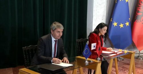 La Vicepremier Belinda Balluku e il Direttore della Banca europea per gli investimenti (BEI) Lionel Rapaille hanno messo le proprie firme sul memorandum di finanziamento della linea ferroviaria fra Durazzo e Rrogozhina come parte del Corridoio VIII, infrastruttura di rilievo logistico macro regionale.