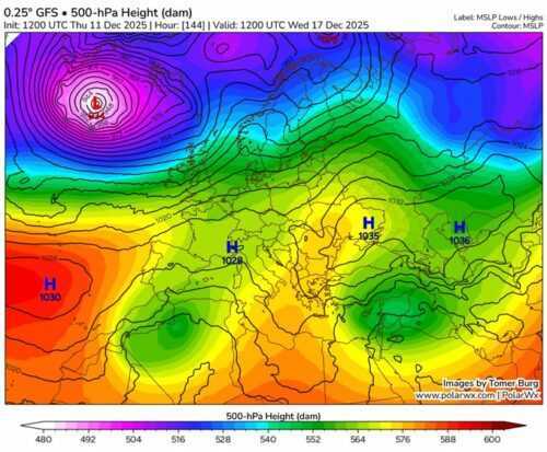 Lo zero termico scenderà sotto i 3.000 metri, valore comunque ancora notevole per il periodo, e i geopotenziali cominceranno a calare. Tra il 16 e il 17 dicembre una bassa pressione centrata tra Nord Africa e Mediterraneo occidentale richiamerà aria umida verso le regioni occidentali del nostro Paese, in particolare Sardegna, zone tirreniche e parzialmente il Nord Italia, portando moderato maltempo di stampo autunnale.