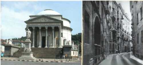 Nella foto doppia: “Chiesa della Gran Madre” e “La casa del boia”; quest’ultima da una cartolina dei primi anni del ‘900