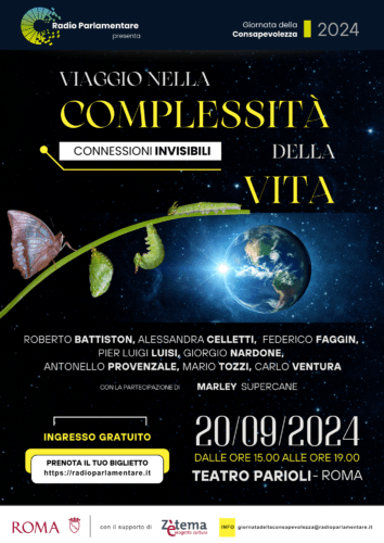 Venerdì 20 settembre, dalle ore 15.00 alle ore 19.00, presso il teatro Parioli di Roma, in occasione della Giornata della Consapevolezza 2024 di Radio Parlamentare, si terrà lo spettacolo – evento di divulgazione scientifica “Viaggio nella Complessità della Vita – Connessioni Invisibili”