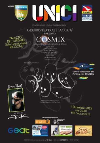 Per celebrare la Giornata internazionale delle persone con disabilità, che si celebra il 3 dicembre, l’associazione Anmic, in collaborazione con l’associazione Parkinson in Rete, presenta lo spettacolo “Cosmix”, in programma domenica 1 dicembre alle 20:30 al Palazzo del Turismo