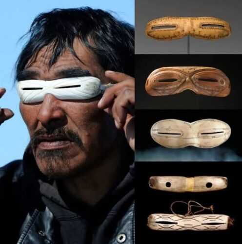 Si trattava, infatti, di semplici montature capaci di protegge dall’eccessiva luce. Erano costruiti impiegando ossa di balena, di tricheco, avorio marino, corno di caribù o legno, e avevano una fessura orizzontale in grado di fornire una visuale ristretta ma priva dei riverberi solari.