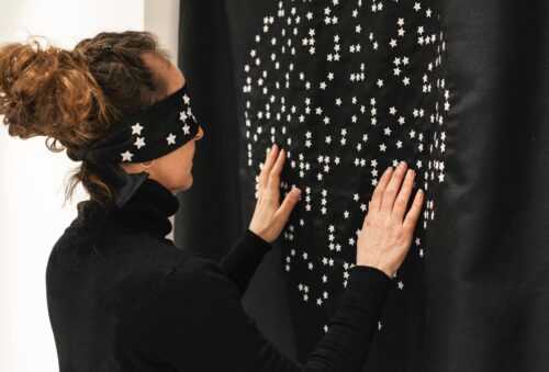 “I limiti non esistono” parte dal Museo d’Arte Contemporanea di Cavalese, cuore culturale della Val di Fiemme, con la mostra “Le stelle che non ti ho detto“. L’esposizione, curata dalla Direttrice del Museo Elsa Barbieri e da Sabino Maria Frassà, presenta le suggestive opere tessili in “braille stellato”, un alfabeto ideato da Fulvio Morella nel 2022. La Direttrice del Museo spiega che “Si intitola Sipario di Stelle la prima opera tessile che Fulvio Morella ha realizzato.