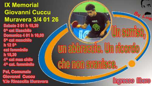 Si parte con un appuntamento consolidato che per la sua valenza emozionale richiama di solito tanti appassionati. Si tratta del memorial Giovanni Cuccu, giunto alla nona edizione che viene ospitato a Muravera dal 3 al 4 gennaio. Nel primo giorno, presso la struttura comunale dedicata proprio al giovane pongista scomparso improvvisamente nell’aprile 2017, si dà inizio a quello che ufficialmente è il 3° torneo regionale predeterminato e che per tradizione viene riservato ai 6a categoria. Il via alle contese verrà dato alle ore 15:30 dal binomio arbitrale composto Da Nicola Mazzuzzi e Rossana Spiggia.