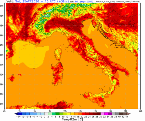 Nel weekend l’anticiclone porterà sole diffuso e temperature localmente vicine ai 25-26 °C, soprattutto al Centro-Nord e nelle aree interne